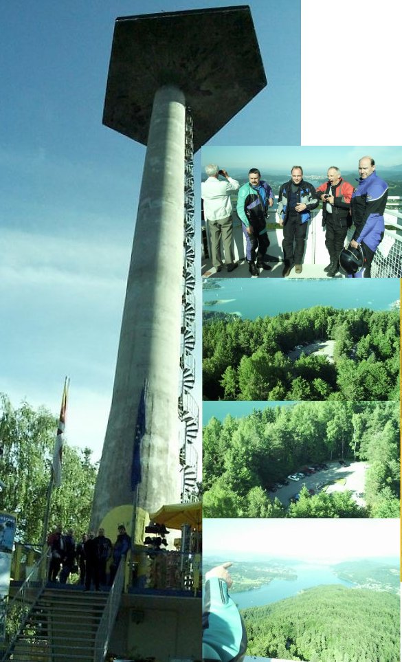 ![]() Lunz bis Finkenstein, ca. 430 km Die sehr schöne Etappe führte uns bei schönem Wetter durch Eisenerz mit dem Erzberg: In Edelschrott gab es dann eine kurze Pause: Auf einer genialen Paßstrecke kurz vor Lavamünd hatten wir einen schönen Überblick über Kärnten (und noch zwei Mercedes-Benz Erlkönige, leider ohne Fotos): ![]() Vom Pyramidenkogel gibt es eine tolle Aussicht auf den Wörther See ![]() Nach der Ankunft in Finkenstein frönte die "kettengetriebene" Crew wieder ihrem Hobby