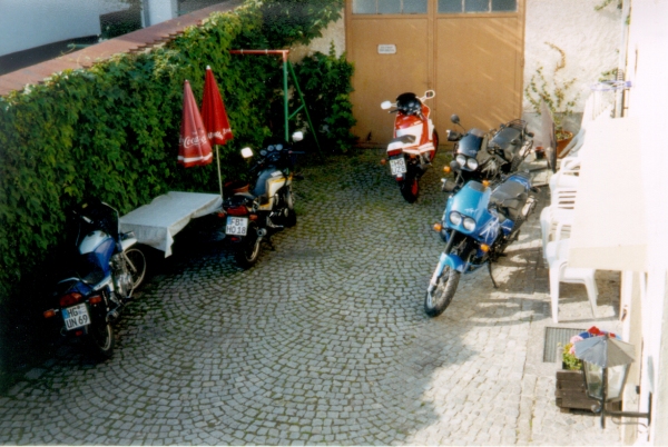 ![]() Anfahrt in die Alpen, ca. 550 km Die Anfahrt erfolgte bei herrlichem Wetter um 8:44 ab Bischofsheim