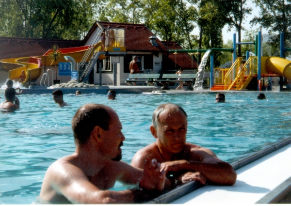![]() Da die Temperatur nur nachts unter 30 Grad fiel wurde am Freitag Pause gemacht und nach dem Fußball der Nachmittag im schönen Seebad von Mörbisch verbracht |